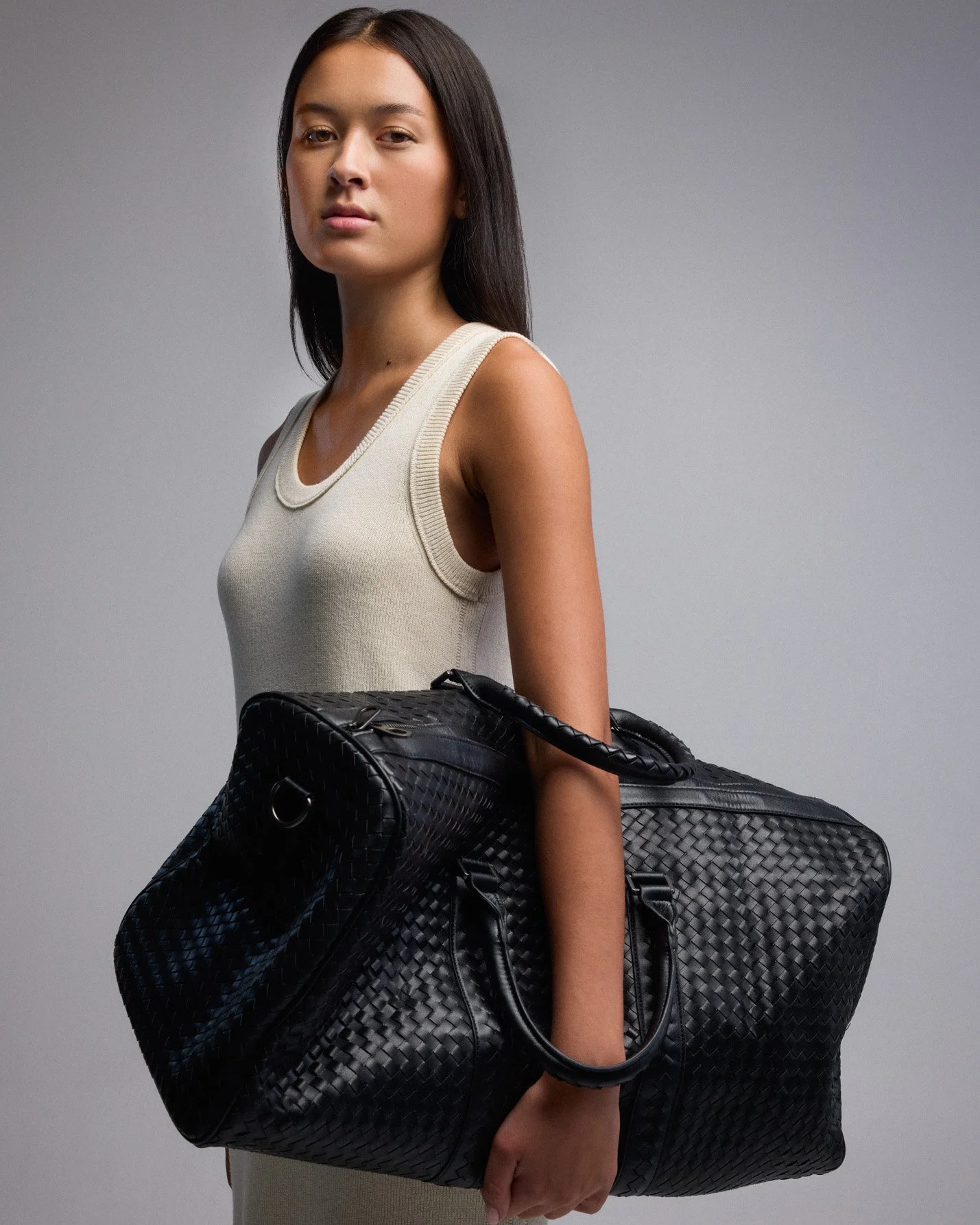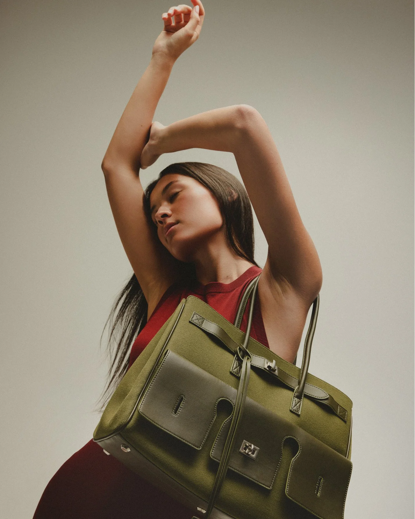 The aim was to draw out and elevate the inherent character of each design. For more sculptural forms, we leaned into shadow and contour to define silhouette and presence; for woven textures and natural grain, the light was refined to enhance tactility without losing depth or integrity. All of the clothing sourced was architectural and minimal, with the intention of complimenting or contrasting the bags texture and colours.